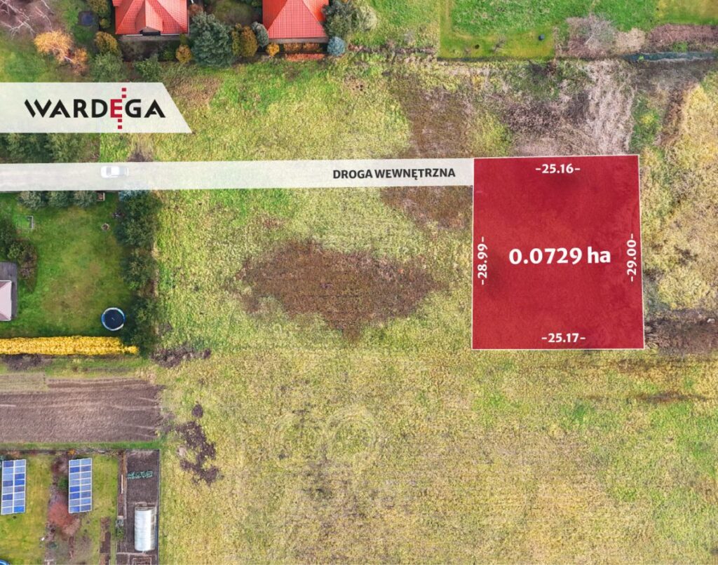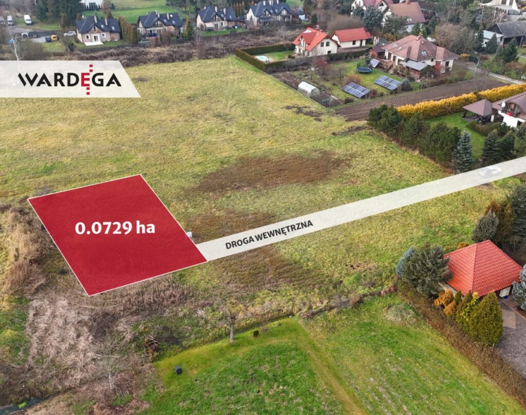 Na sprzedaż działka o powierzchni 7.29 a - w całość teren budowlany oznaczony w miejscowym planie zagospodarowania przestrzennego jako tereny zabudowy mieszkaniowej jednorodzinnej (MN2). Działka płaska, w kształcie regularnego prostokąta o wymiarach 29x25 m. Zakup działki obejmuje również udział w wewnętrznej drodze dojazdowej, stanowiącej dojazd do nieruchomości. Droga ta jest nieutwardzona i zapewnia dostęp do drogi gminnej.
