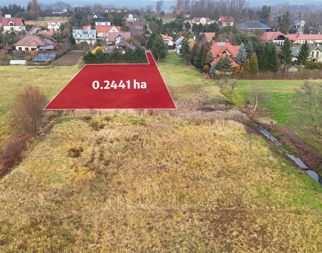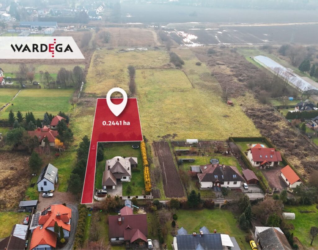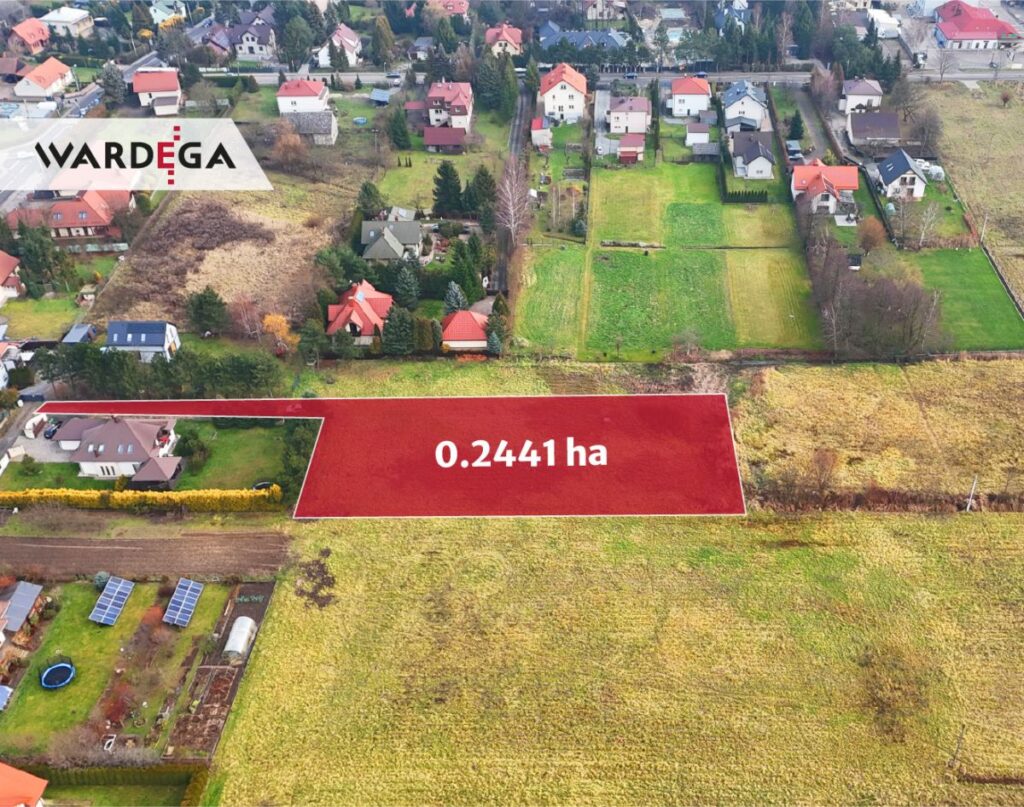 Na sprzedaż działka o powierzchni 24.41 a - w całość teren budowlany oznaczony w miejscowym planie zagospodarowania przestrzennego jako tereny zabudowy mieszkaniowej jednorodzinnej (MN2). Działka płaska, składa się z dużego, regularnego prostokąta oraz dodatkowego pasa, który pełni funkcję dojazdu. Dzięki temu działka posiada własny dostęp do drogi, a część budowlana pozostaje szeroka i ustawna. Nieruchomość bezpośrednio przylega do drogi gminnej asfaltowej. Wymiary głównej części działki to: 29x76.5 m, z kolei pasa dojazdowego to: 53.5x4 m.