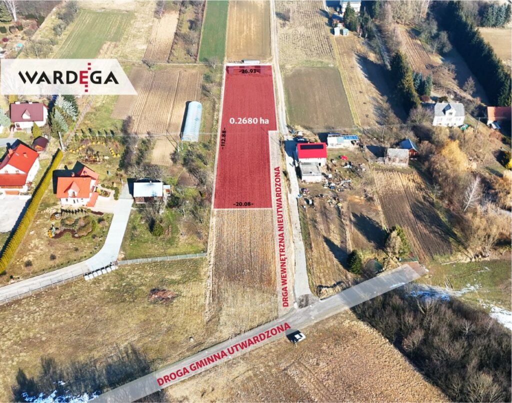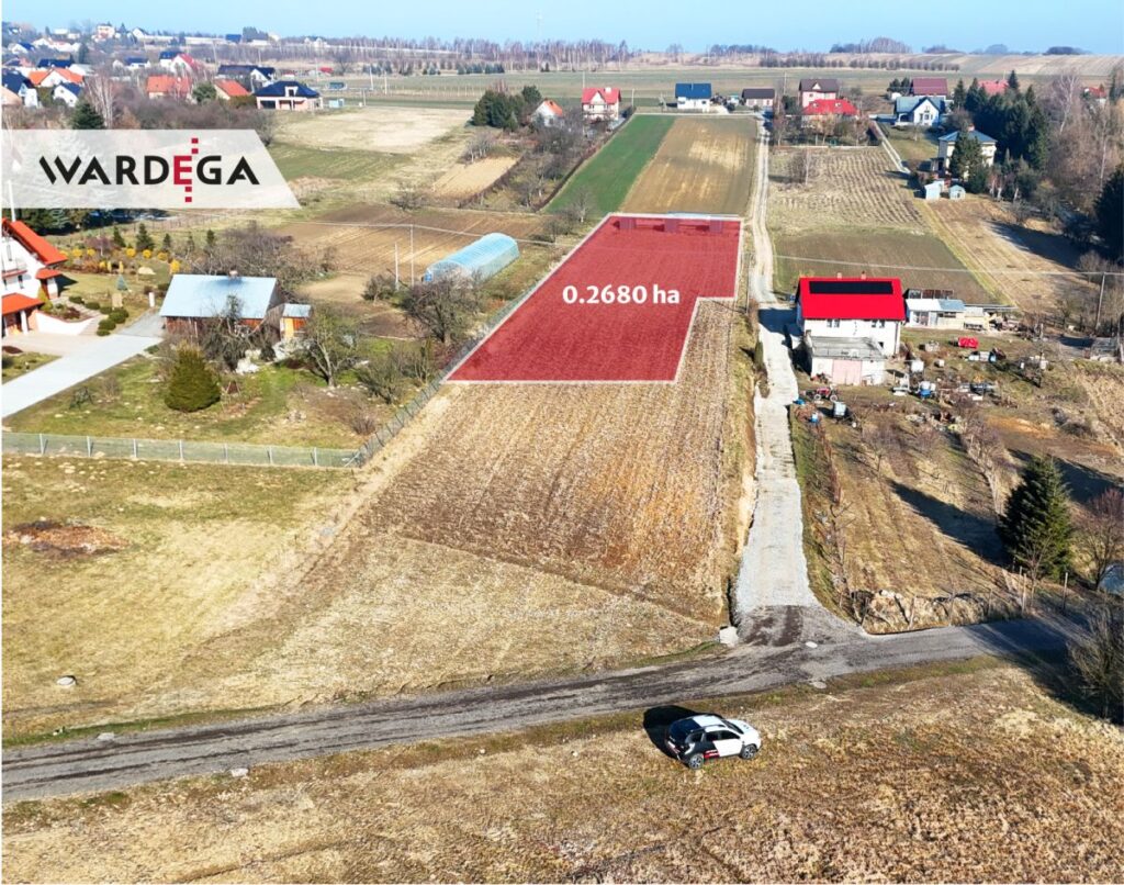 Na sprzedaż działka rolno-budowlana o powierzchni 26.80 a - z czego ok. 10.40 a stanowi teren budowlany oznaczony w miejscowym planie zagospodarowania przestrzennego jako tereny zabudowy mieszkaniowej jednorodzinnej o niskiej intensywności (MN I), pozostała część to tereny rolne (R). Działka lekko pochyła o ekspozycji południowej, w kształcie wielokąta o wymiarach ok. 27x113x20x108 m. Dojazd drogą wewnętrzną nieutwardzoną.
