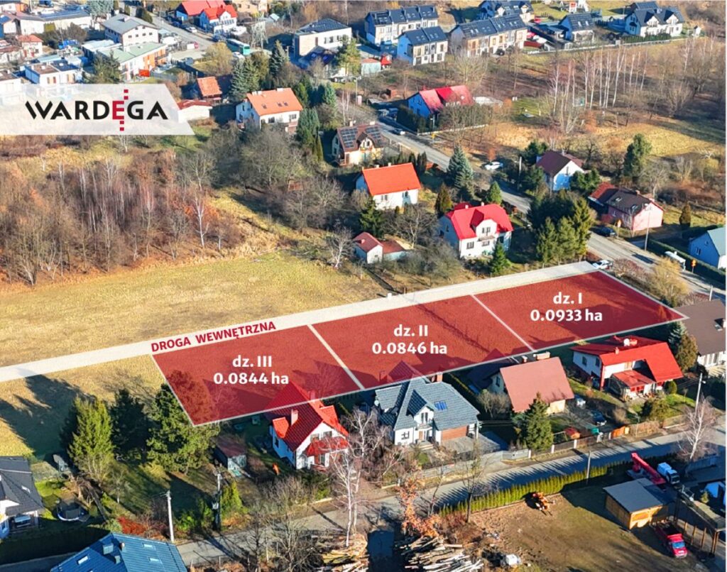 Na sprzedaż działka budowlana o powierzchni 0.0933 ha (dz. I) oznaczona w miejscowym planie jako tereny zabudowy mieszkaniowej jednorodzinnej lub usługowej, o podstawowym przeznaczeniu pod zabudowę jednorodzinną lub pod zabudowę budynkami usługowymi (MN/U.11) z zaznaczeniem, że dla nowej zabudowy na działkach lub ich częściach położonych w pasie o szerokości 150 m od krawędzi jezdni autostrady A4 - zakaz realizacji zabudowy z pomieszczeniami na stały pobyt ludzi. Teren płaski, działka w kształcie zbliżonym do prostokąta o bokach ok. 32×30 m. Działka posiada bezpośredni dostęp do drogi publicznej asfaltowej. Możliwość zakupu działki sąsiedniej (dz. II).