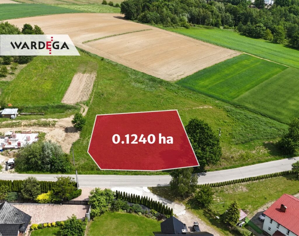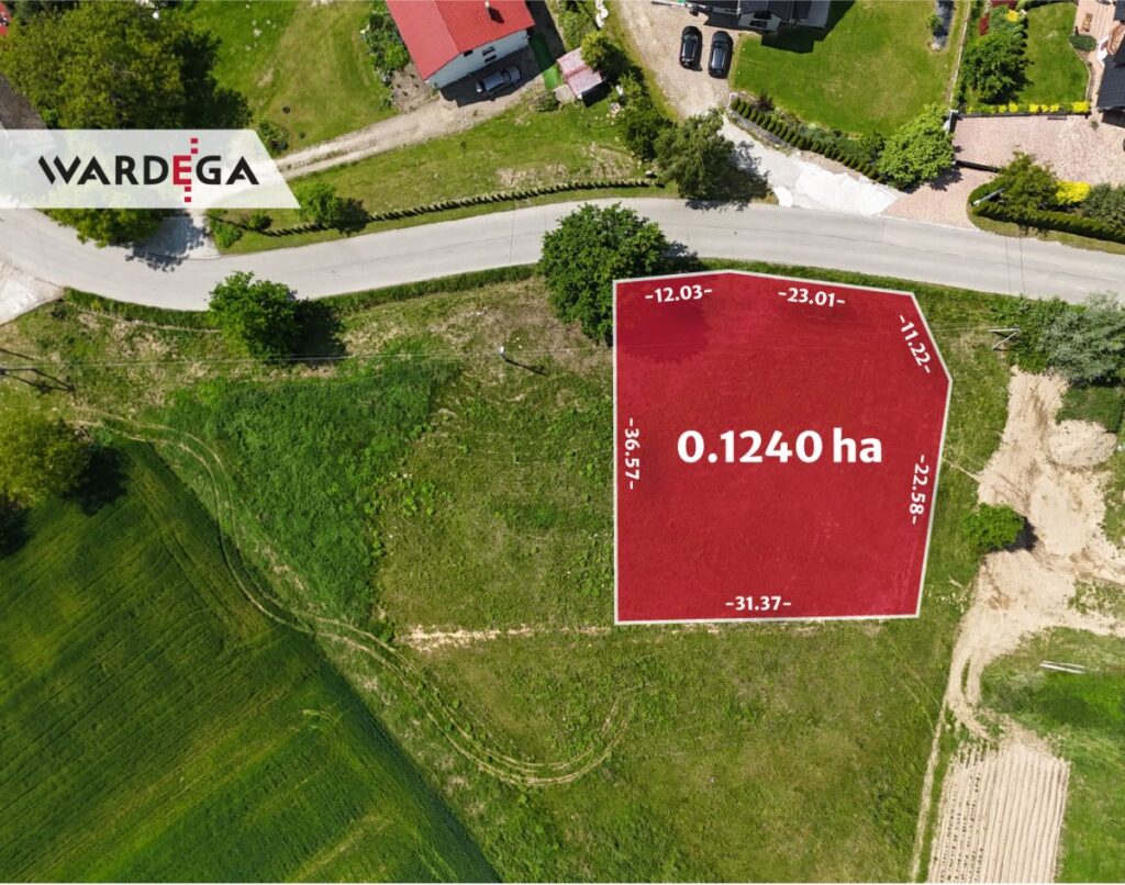 Na sprzedaż działka o powierzchni 12.40 a - z czego ok. 10.40 a to teren budowlany oznaczony w miejscowym planie zagospodarowania przestrzennego jako zabudowa mieszkaniowa jednorodzinna (MN4), pozostała część działki to pas drogowy. Działka lekko pochyła, o ekspozycji zachodniej, w kształcie trapezu o wymiarach 35x34x31x36.5 m. Dojazd drogą publiczną asfaltową.